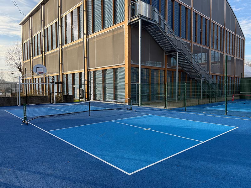 Notre espace multisports en libre accès vous permettra de jouer avec vos enfants au basketball, football et pickleball.
